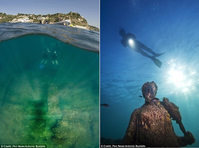 Байи - своего рода Монте-Карло для сверхбогачей античного Рима, синоним роскоши и развращенности. Но по прошествии столетий большая часть древнего города покрыта морем, так как вулканическая активность отодвинула береговую линию далеко вглубь суши. Но спустя 1700 лет после исчезновения под волнами Байи снова предстанут перед нами на этих удивительных фотографиях.