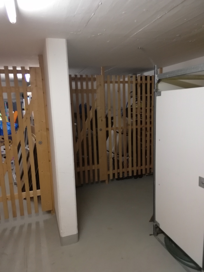 Само бомбоубежище располагается в подземном гараже и соединяет собой 3 дома. Наш дом на 6 хозяев. Бомбоубежище в подвале 1го дома.