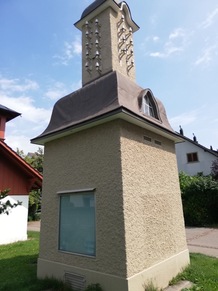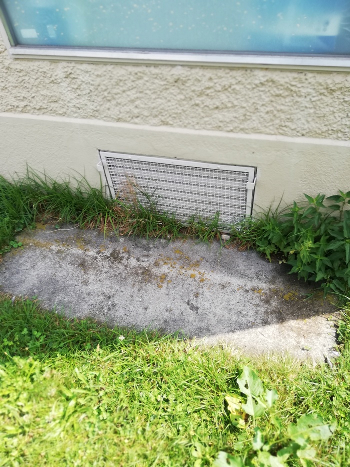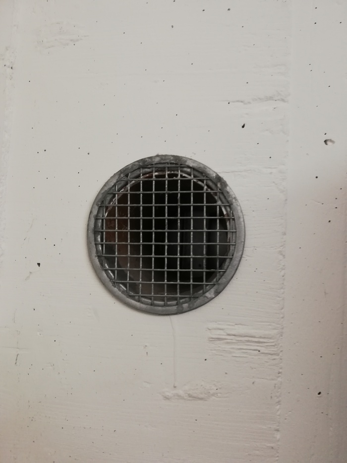 Система вентиляции выглядит так. Снаружи она совмещена с подстанцией. Если смотреть в круглое отверстие, то видно, что в начале, идёт железный венткороб, который выходит в одной из каморок. (возможно, я ошибаюсь, это мои вычисления)