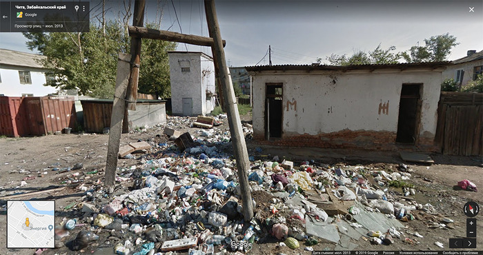Вам может показаться, что я приехал в неудачное время, что просто ещё не успели убрать. Нет, друзья, любой желающий может открыть карты и посмотреть архивные снимки, снимки со спутников. И вы увидите, что этот п*здец тут длится годами! Тут ничего не меняется! Люди в буквальном смысле живут в говне. Вот кадр 2013 года. За 5 лет мусора стало немного больше – вот и все изменения. 2013 год, ещё не было Крыма, не было Олимпиады и чемпионата мира по футболу. Не было войны с Украиной, не было санкций и падения экономики. Ничего не было, а утопающая в говне Чита была...