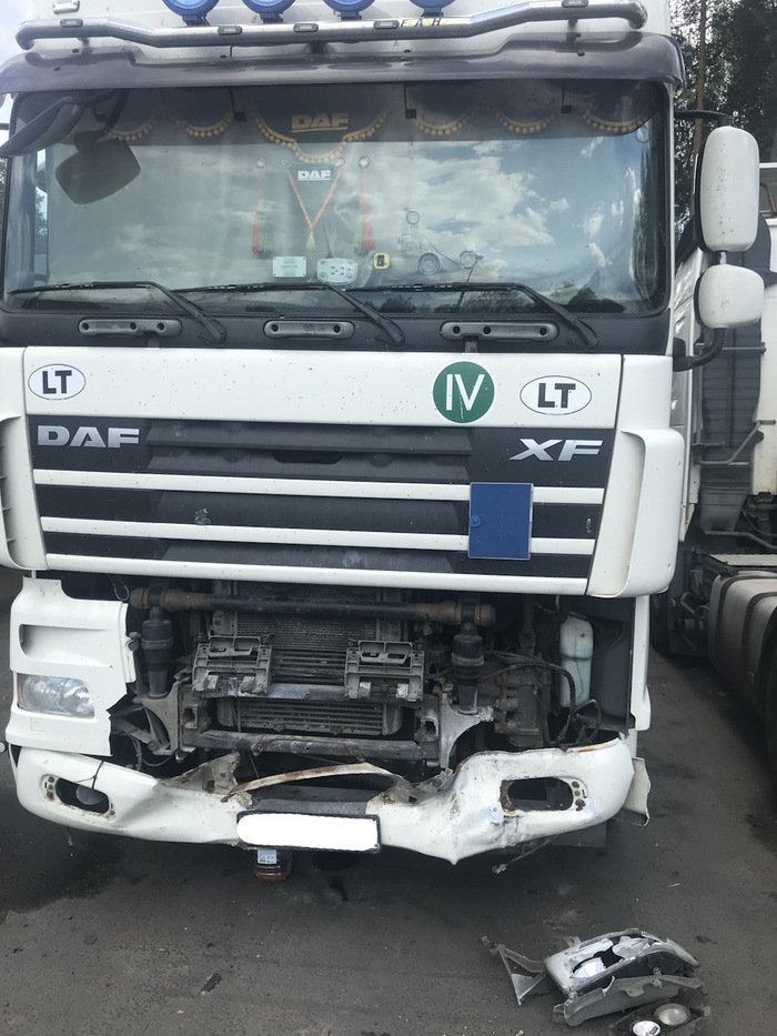 Дело в том, что, у водителя через дней 10 заканчивается виза, а также капают деньги за простой контейнера. Это еще хорошо, что он уже разгрузился и попал в аварию пустым. Фура обездвижена, свои ходом ехать не может, заводится, но пробит радиатор и возможно что-то еще, оттащили эвакуатором.