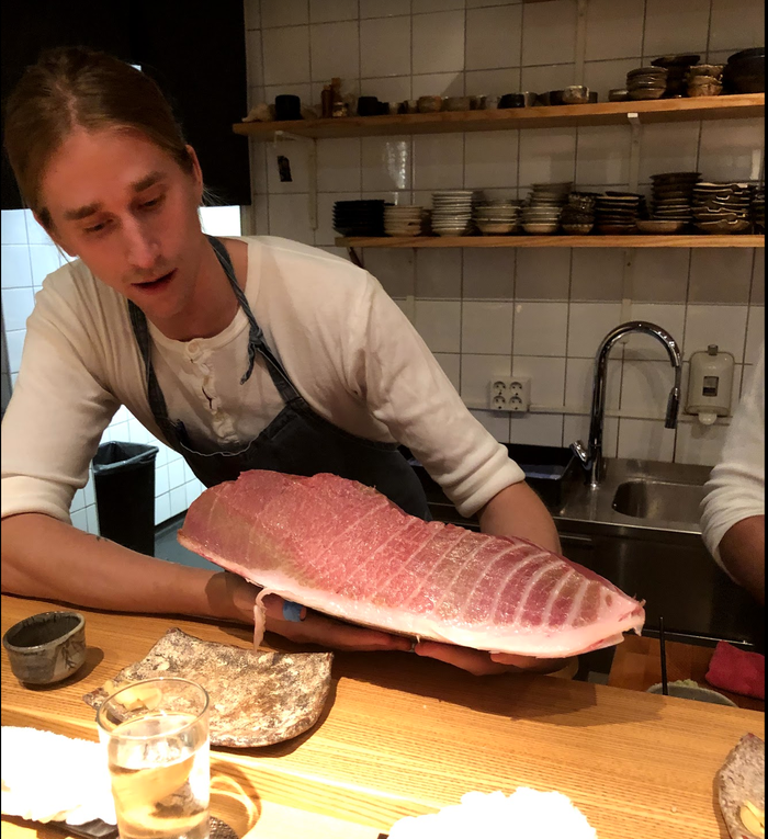 Загвоздка в том, что всю жизнь до этого я либо не ел такую рыбу, либо ел ее после суперзаморозки, поэтому до конца не было понятно, насколько она шикарна. Когда они говорили что-то вроде “манильский шелфиш из Франции” и доставали ракушку с ним, в голове у меня возникал абстрактный вкус, соответствующий описанию. Потом я клал себе в рот какую-то черную хрень, и оказывалось, что по консистенции это скорее тунец, нежели не кальмар, как презентовали.