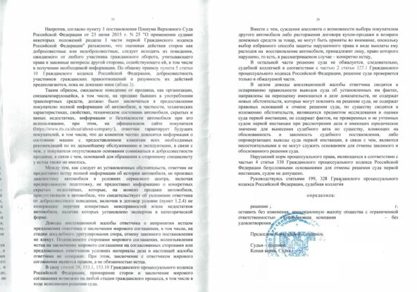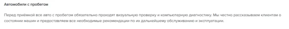 Юридический нюанс: Заявления на сайте повысили уровень ожидаемого добросовестного поведения Продавца. Фраза «честно рассказываем о состоянии» — лишили продавца возможности ссылаться на тот факт,что покупатель должен был самостоятельно проверить состояние автомобиля перед покупкой с т.ч. и с привлечением специалиста.