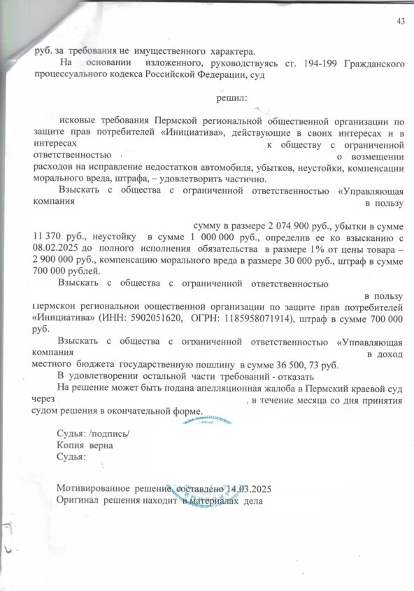 Суд полностью встал на нашу сторону и вынес блестящее решение. С продавца взыскали: