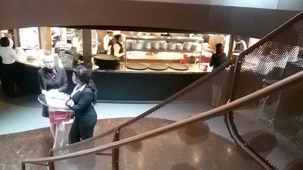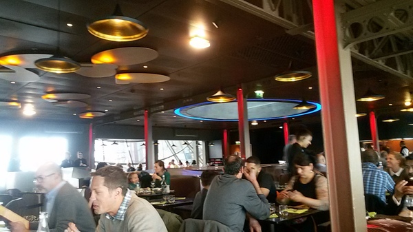 Обед очень вкусный и достойный ресторана такого уровня. Замечательное оформление и подача блюд. На мой взгляд, стоимость обеда (42 евро на человека) завышена раза в два по сравнению с кафе и ресторанами "на земле" в центре города, но оно того стоит. Атмосфера ресторана очень уютная и завораживающая. Официанты очень вежливые, быстрые и ненавязчивые.