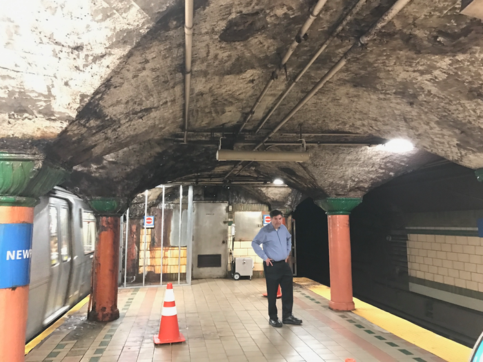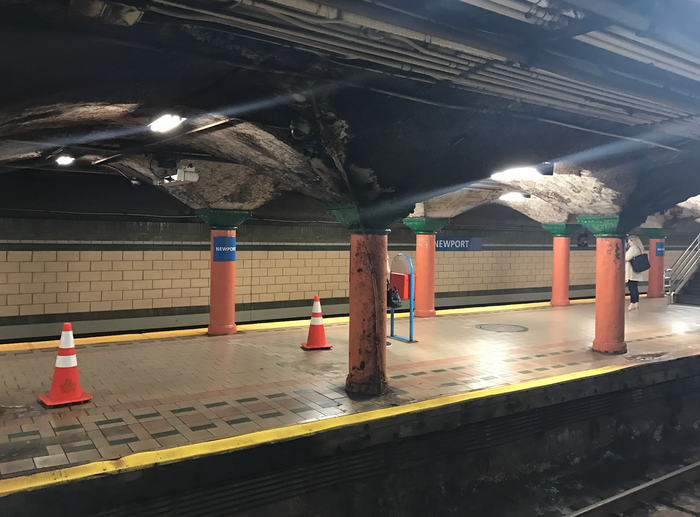 Несколько месяцев назад обследовал станцию пострадавшую от урагана Сэнди в конце 2012. Последствия устраняют до сих пор. На фото станция Ньюпорт в Нью Джерси.