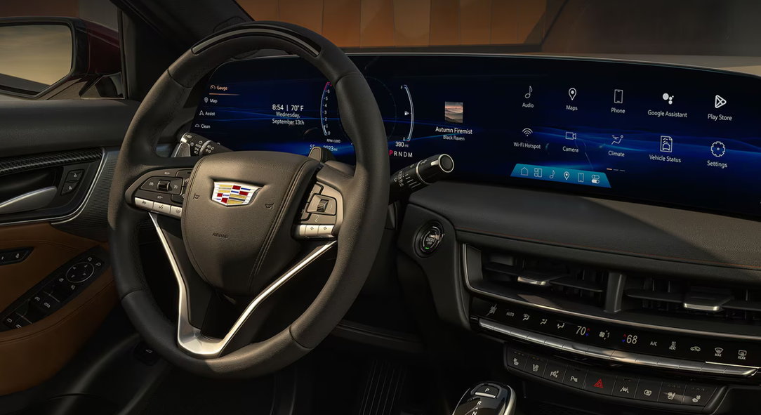 Cadillac CT5 2026 предложит два варианта двигателей: 2,0-литровый турбированный мотор мощностью 237 л.с. с крутящим моментом 350 Н•м и 3,6-литровый V6 с двойным турбонаддувом мощностью 335 л.с. и крутящим моментом 550 Н•м.