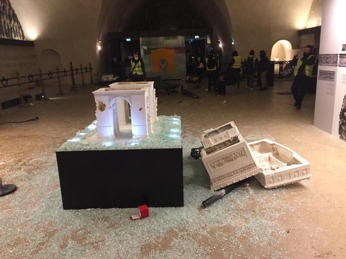 Жертвой вандалов стала даже Триумфальная арка. Это один из важнейших символов Франции и национальная святыня. Кроме того, под аркой находится могила Неизвестного солдата, погибшего во время Первой мировой войны. Саму арку расписали лозунгами, а также выломали дверь и развандалили музей.
