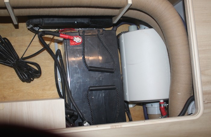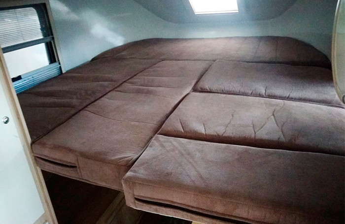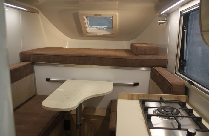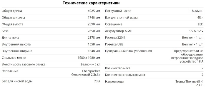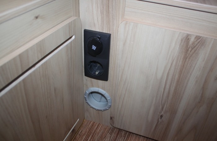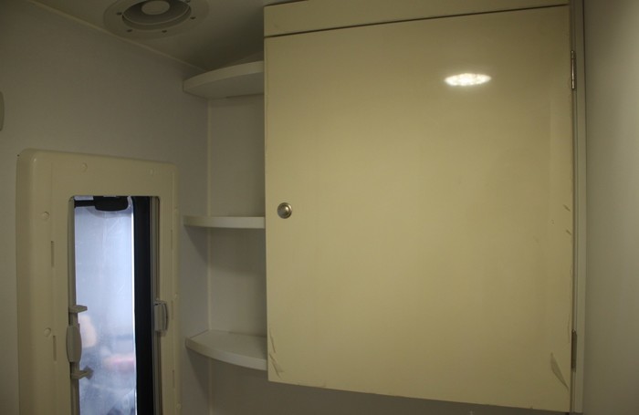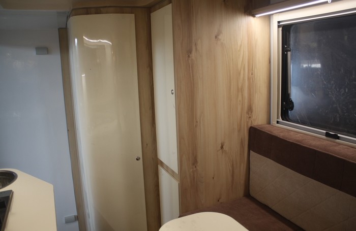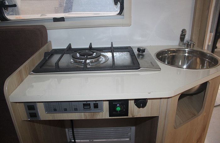 Кухня оборудована газовой плитой с одной конфоркой и раковиной. В ванной комнате установлен душевой поддон, кассетный туалет, раковина и шкаф для хранения косметических принадлежностей.