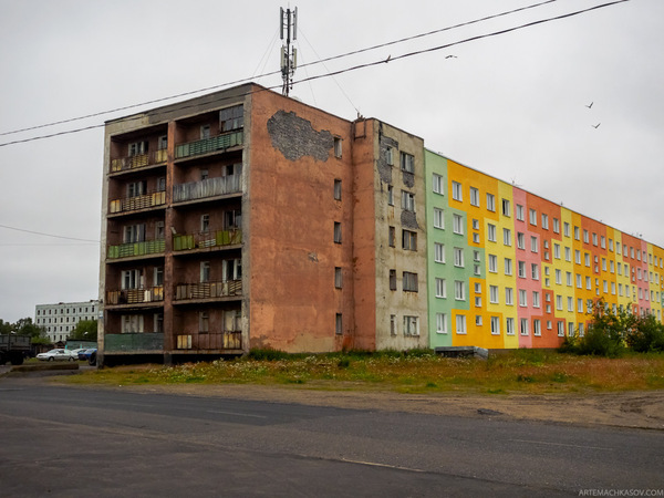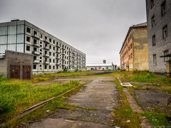 Во дворе стоят машины, играют на современной детской площадки дети. Не смотря ни на что, тут продолжают жить люди. Кто-то служит Родине в одной из действующих военный частей по соседству, кто-то не может или не хочет уезжать в Мурманск.