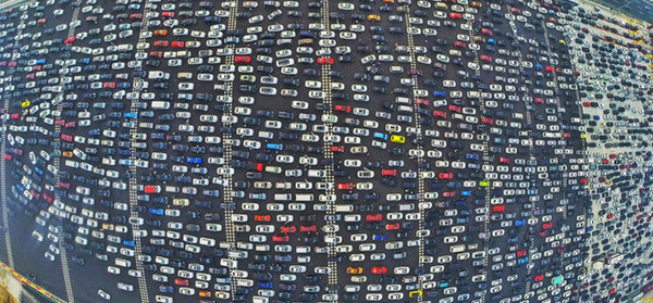 В октябре прошлого года в этом месте образовалась пробка из тысяч автомобилей. Причиной стало несколько факторов. Как раз в это время ремонтировали одну из полос после пропускного пункта. Кроме того, это был Национальный день в Китае, и, по некоторым данным, около 750 млн человек покинули свои дома ради поездки на отдых.
