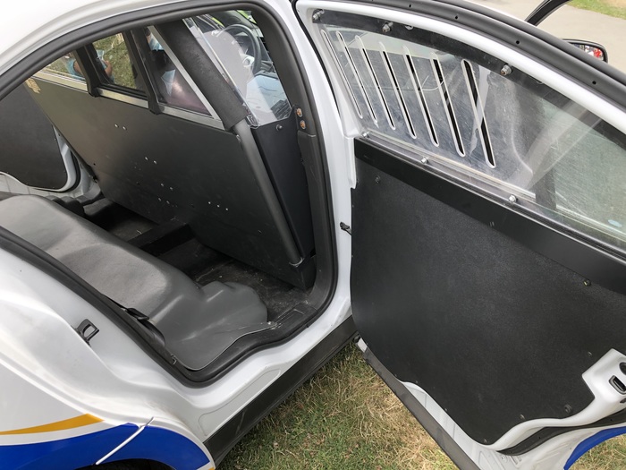 На задних дверях заглушки. Вместо окон прочный пластик: