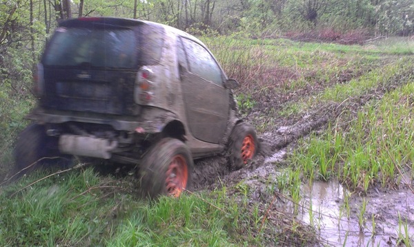 автомобиль отлично едет по сложным спец участкам на трофи рейдах из за заднемоторной компоновки, малого веса и лучшей грязевой резине