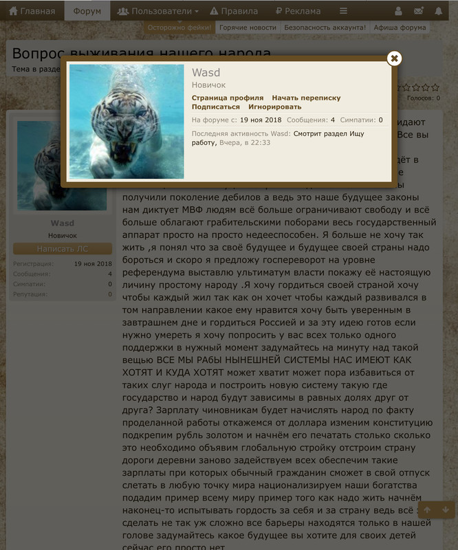 Здравствуйте уважаемые скорей всего меня забанят и закидают критикой но я всё же продолжу хочу узнать ваше мнение.Все вы находитесь и работаете здесь потому что вы неглупые и свободные люди так вот все вы видите что страна наша идёт в никуда половину уже продали это так называемые частные инвестиции в конституции запретили идеологию в итоге мы получили поколение дебилов а ведь это наше будущее законы нам диктует МВФ людям всё больше ограничивают свободу и всё больше облагают грабительскими поборами весь государственный аппарат просто на просто недееспособен. Я больше не хочу так жить ,я понял что за своё будущее и будущее своей страны надо бороться и скоро я предложу госпереворот на уровне референдума выставлю ультиматум власти покажу её настоящую личину простому народу .Я хочу гордиться своей страной хочу чтобы каждый жил так как он хочет чтобы каждый развивался в том направлении какое ему нравится хочу быть уверенным в завтрашнем дне и гордиться Россией и за эту идею готов если нужно умереть я хочу попросить у вас всех только одного поддержки в нужный момент задумайтесь на минуту над такой вещью ВСЕ МЫ РАбЫ НЫНЕШНЕЙ СИСТЕМЫ НАС ИМЕЮТ КАК ХОТЯТ И КУДА ХОТЯТ может хватит может пора избавиться от таких слуг народа и построить новую систему такую где государство и народ будут зависимы в равных долях друг от друга? Зарплату чиновникам будет начислять народ по факту проделанной работы откажемся от доллара изменим конституцию подкрепим рубль золотом и начнём его печатать столько сколько это необходимо объявим глобальную стройку отстроим страну дороги деревни заново задействуем всех обеспечим такие зарплаты при которых обычный гражданин сможет в свой отпуск слетать в любую точку мира национализируем наши богатства подадим пример всему миру пример того как надо жить начнём наконец-то испытывать гордость за себя и за страну ведь всё это сделать не так уж сложно все барьеры находятся только в нашей голове задумайтесь какое будущее вы хотите для своих детей сейчас его просто нет