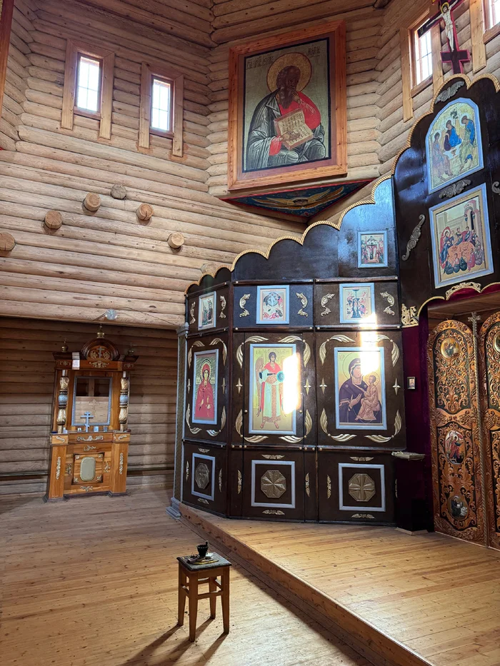Она была возведена по инициативе осужденных и их же силами. Сруб, внутренняя и внешняя отделка и даже иконы - все это создано без привлечения специалистов с воли. Строительство выполнено без единого гвоздя.