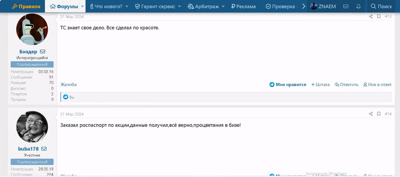 Сообщение в теме 'ПРОВЕРЕНО - СБ ZNAEM - [Пробивы по линии МВД, весь спектр услуг всегда в наличии]'. Жалобу на содержимое пользователя ZNAEM отправил(а) ZNAEM. Причина жалобы:
